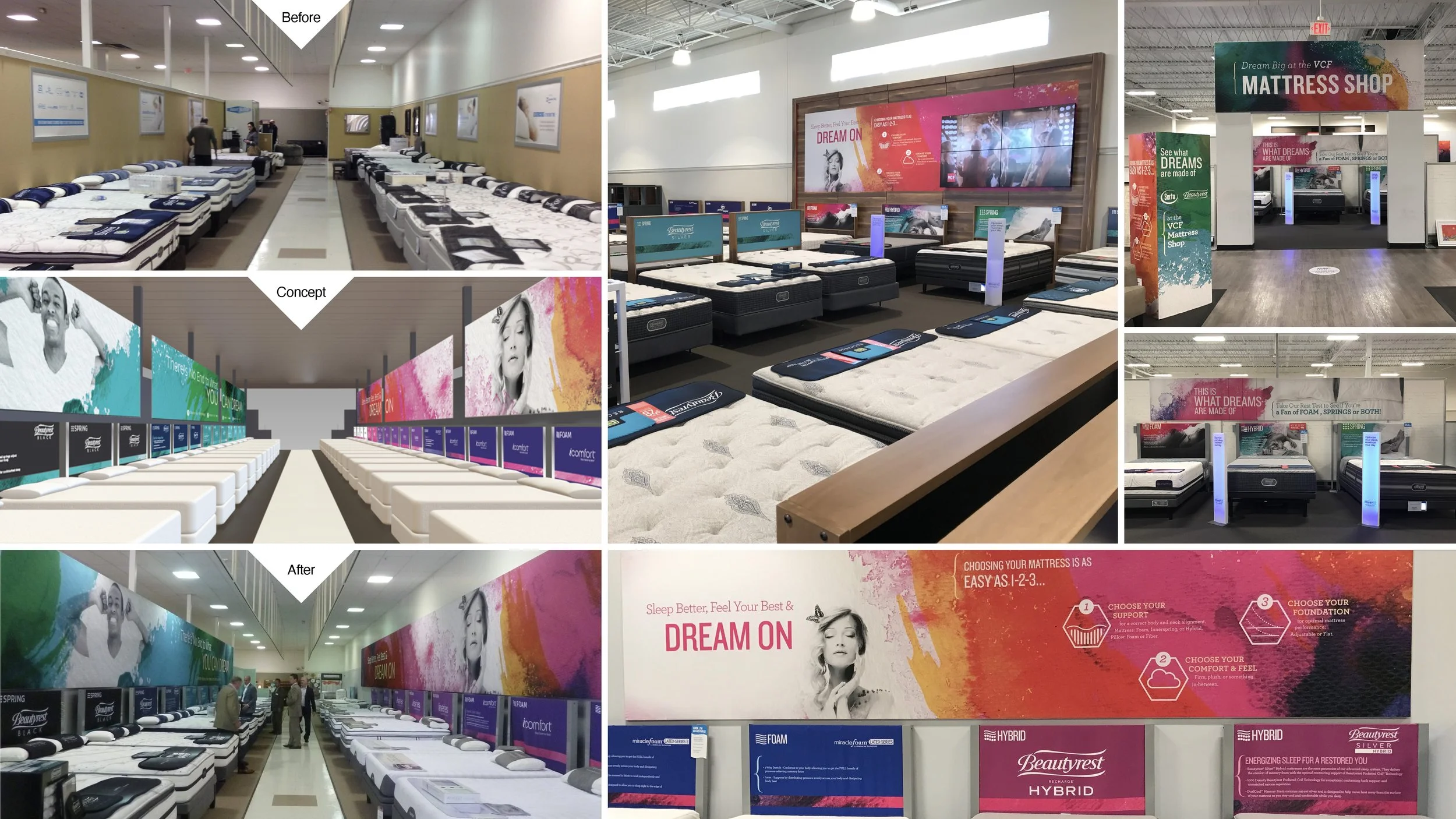 Simmons Bedding Company and VCF challenged us to revamp VCF’s mattress galleries. Our mandate was do increase traffic and conversion to this part of all stores.